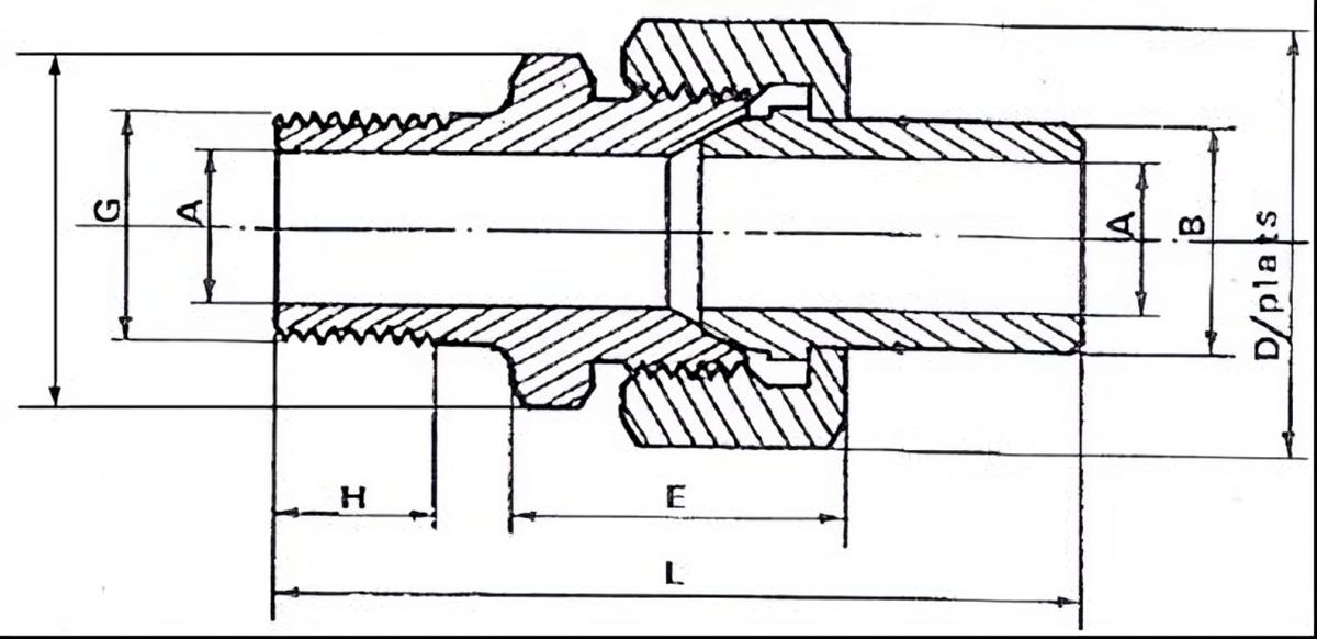 Raccord 3 pièces composé de : 1 corps de raccord fileté en inox 316L, un embout à souder BW en inox 316L, d'un écrou en inox 316
