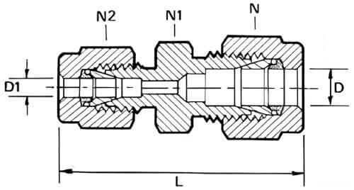 | D Ø tube | D 1 Ø tube1 | N (mm) | N1 (mm) | N2 (mm) | L (mm) | Inox 316L |
