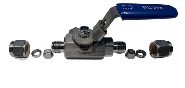 Vanne 2 voies à boisseau sphérique inox 316, corps en 6 pans, PN65