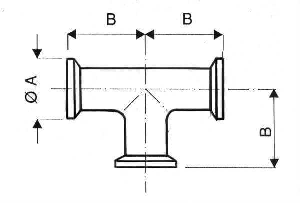 Té égal inox ISO KF pour connecter 3 tuyauteries ISO KF de même DN entre elles